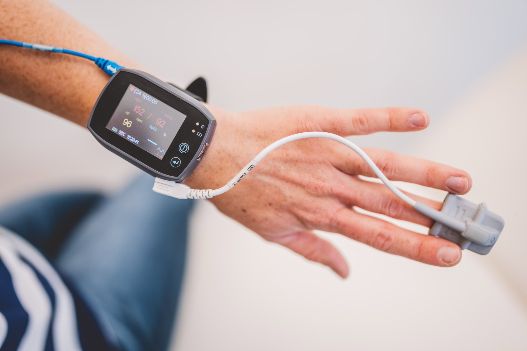 Mittels der durchgängigen 24-Stunden-Blutdruckmessung über eine spezielle Methode ohne Manschette, das sogenannte „beat-to-beat” -Verfahren, zeichnen wir den Blutdruck über mehrere Stunden am Tag und in der Nacht auf.